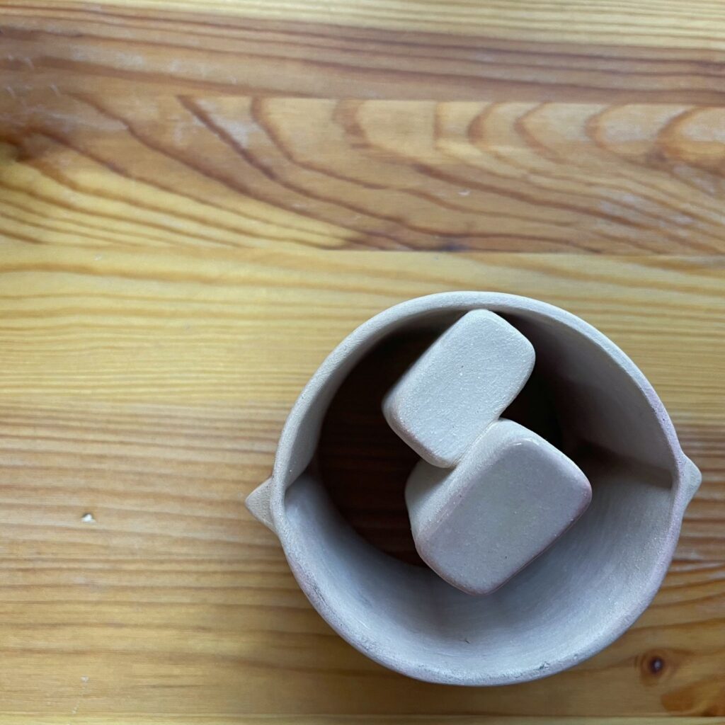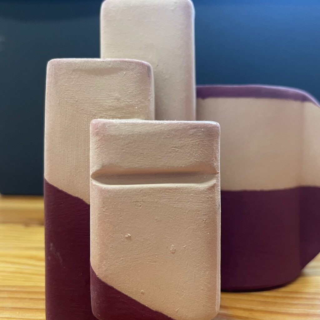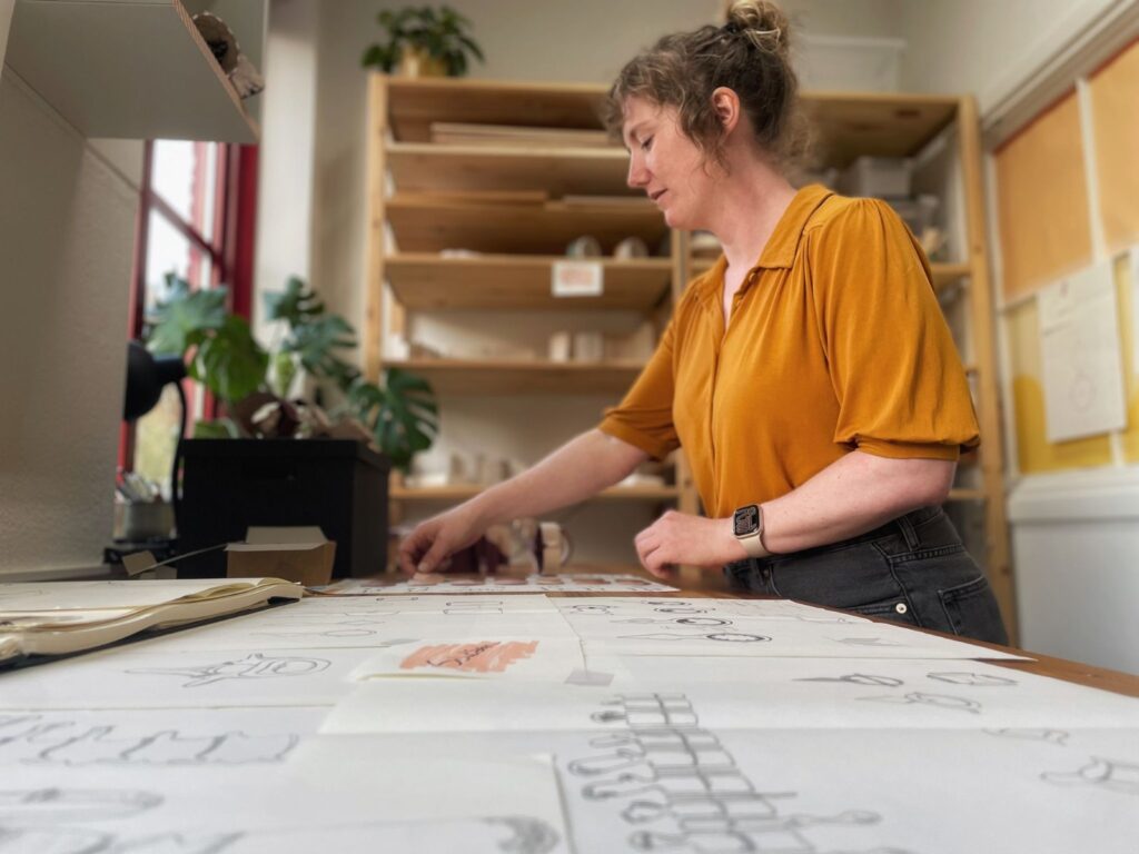 Marga werkt met klei zoals anderen met adem: traag, aandachtig, zoekend naar vorm. In haar atelier ontstaan handgevormde potjes, kandelaartjes en walvis-spaarpotten — elk met een eigen karakter. Ze vertelde hoe ze zich probeert te ontworstelen aan de neiging om enkel functionele objecten te maken, en haar weg zoekt naar iets vrijers, iets wat niet moet maar mag bestaan.