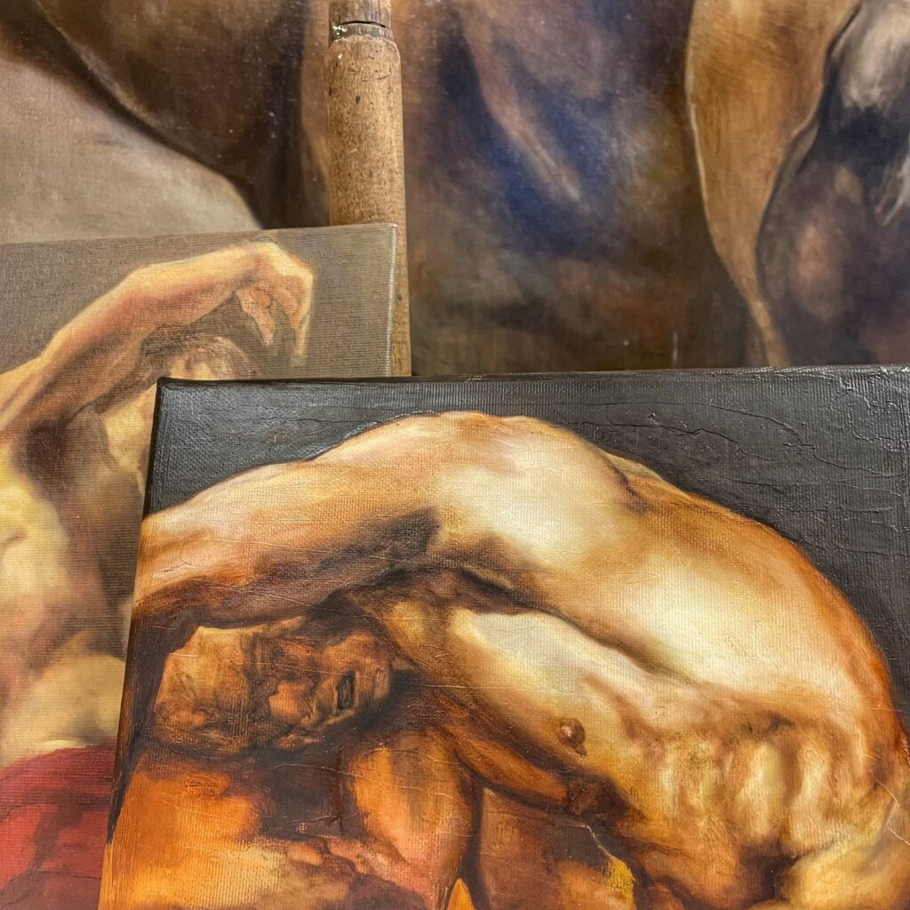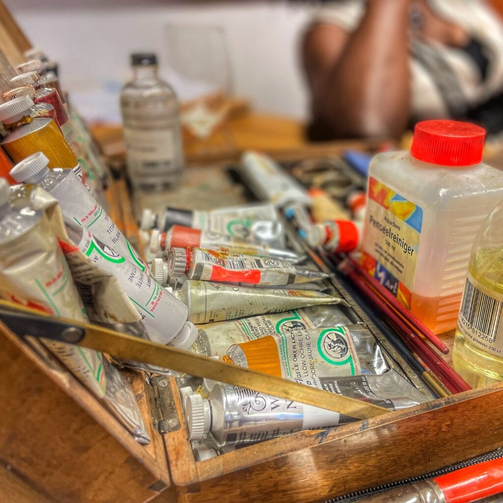 Tijdens Kunstscene zagen we zijn prachtige werken, te groot voor zijn nieuwe atelier, maar te levendig om opgesloten te blijven — ze vinden hun eigen ruimte, buiten de muren, in de blik van de toeschouwer.
