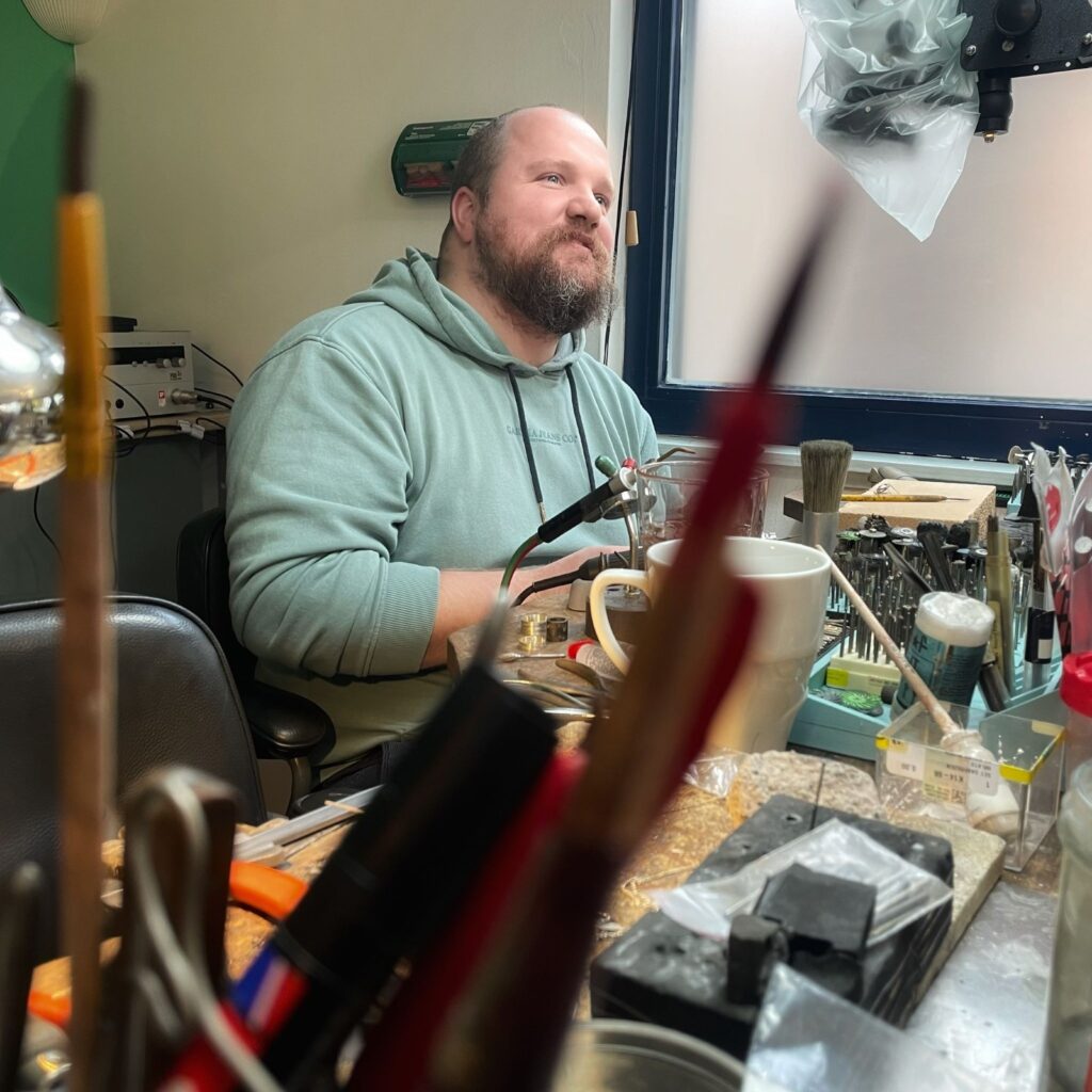 Niet ver daarvandaan, in een ander deel van de stad, werken Alecco & Lizz in hun smederij Lizzz. Daar worden gedachten gesmeed tot sieraden, met vuur, precisie en verbeelding. Alecco werkt geduldig en exact, Lizz met intuïtie en lef — samen vormen ze een evenwicht tussen hand en hart.